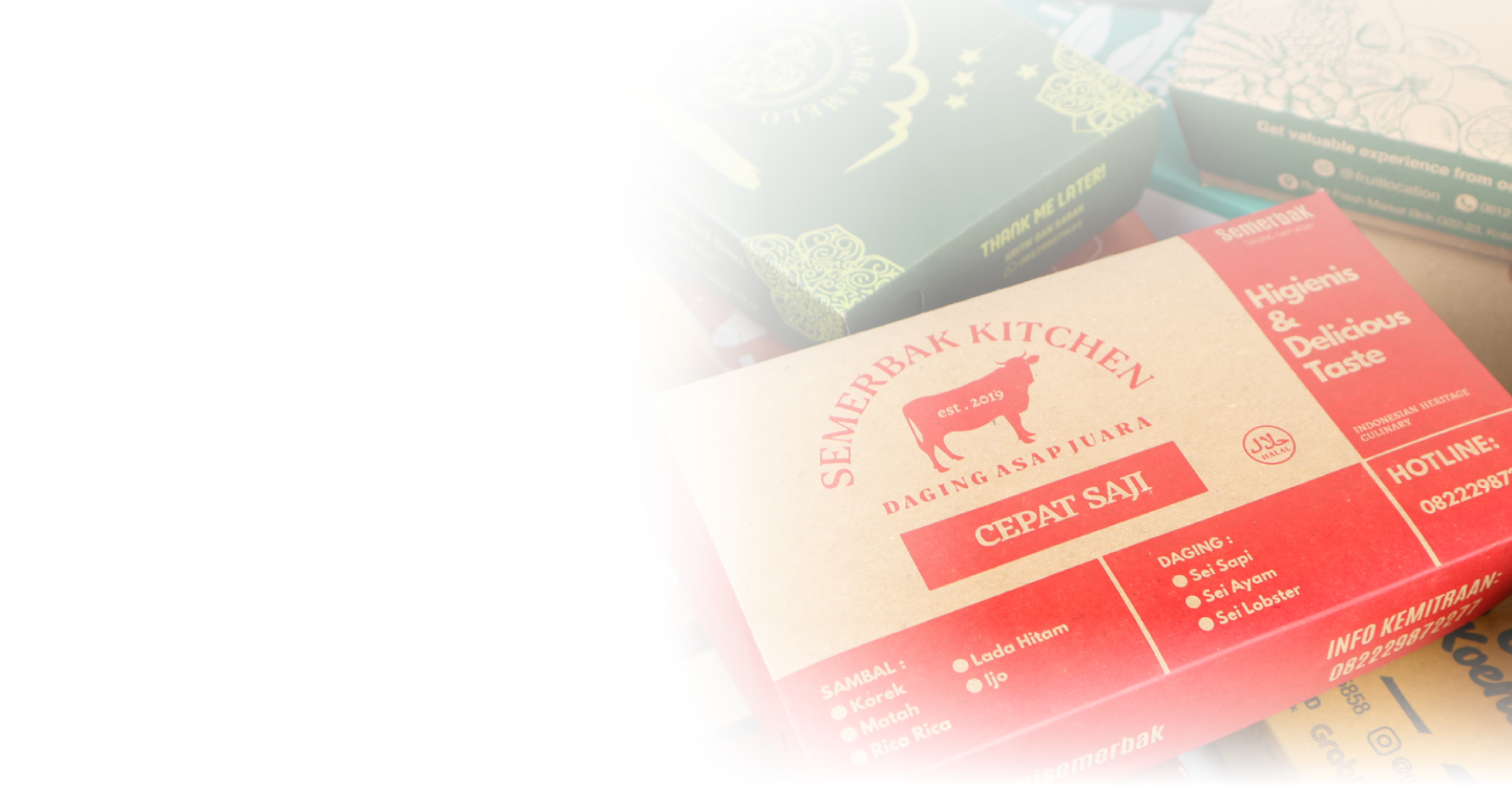 Square Box kemasan fleksibel untuk beragam produk dan makanan, mulai dari nasi, ayam, pastry, bakery, hingga skincare dan body care. Desain dan ukuran bisa disesuaikan dengan kebutuhan.